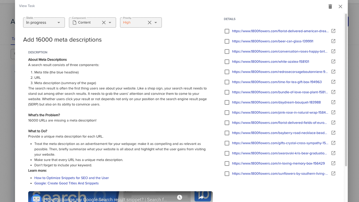 Wie bereits erwähnt, handelt es sich bei den Aufgaben um eine Mischung aus grundlegenden Standard-SEO-Maßnahmen und Problemen, die bei den wöchentlichen automatischen Überprüfungen Ihrer Website festgestellt werden.