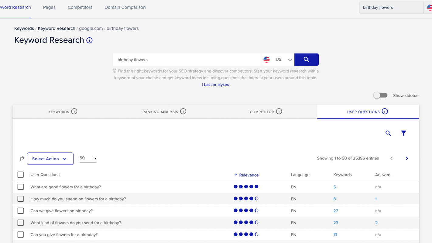 • Profitieren Sie von einer Datenbank mit über 100 Mio. Keywords
