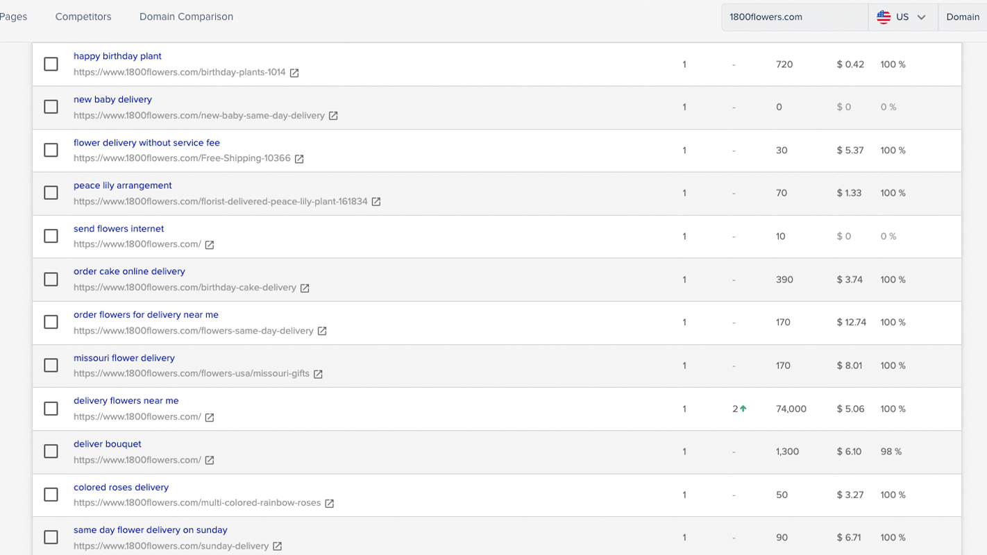 • Vergleichen Sie die Keyword-Rankings von zwei oder mehr Domains